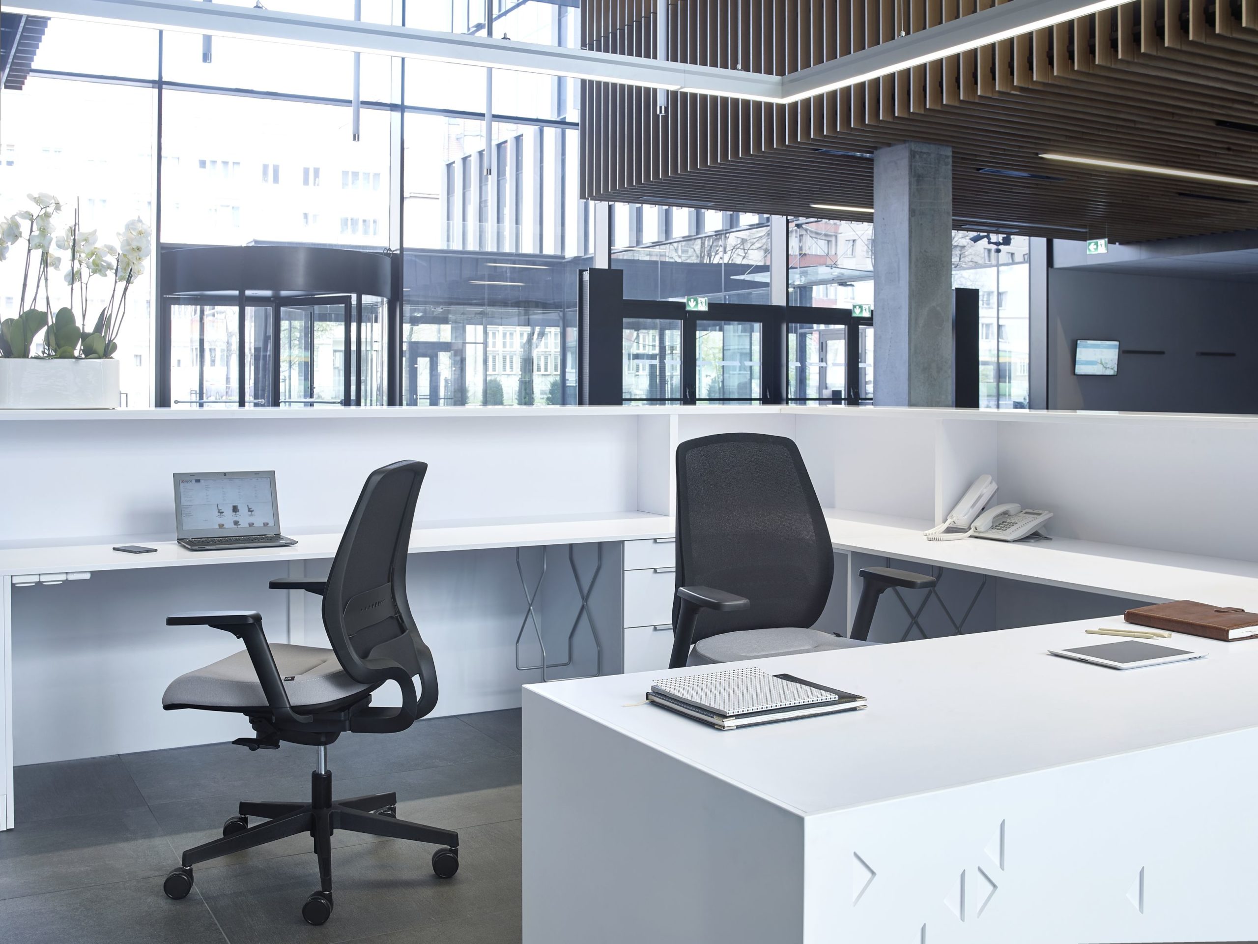 Спеціально висунуті підлокітники з регулюванням висоти дають можливість зручно і комфортно розміститися в кріслі під час роботи.